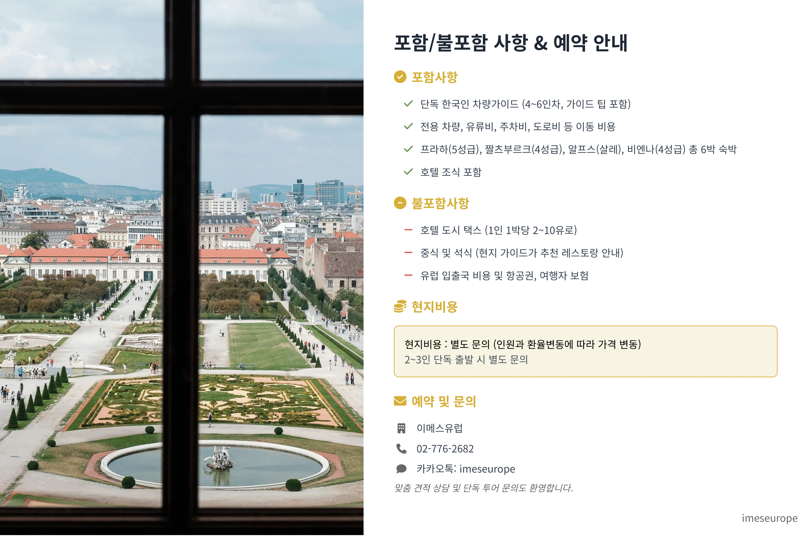 (주)이메스유럽 앤 투어팡신 ㅣ 대표 임응석 ㅣ 사업자등록번호 101-86-89132 ㅣ 관광사업등록번호 제 2014-000018호
