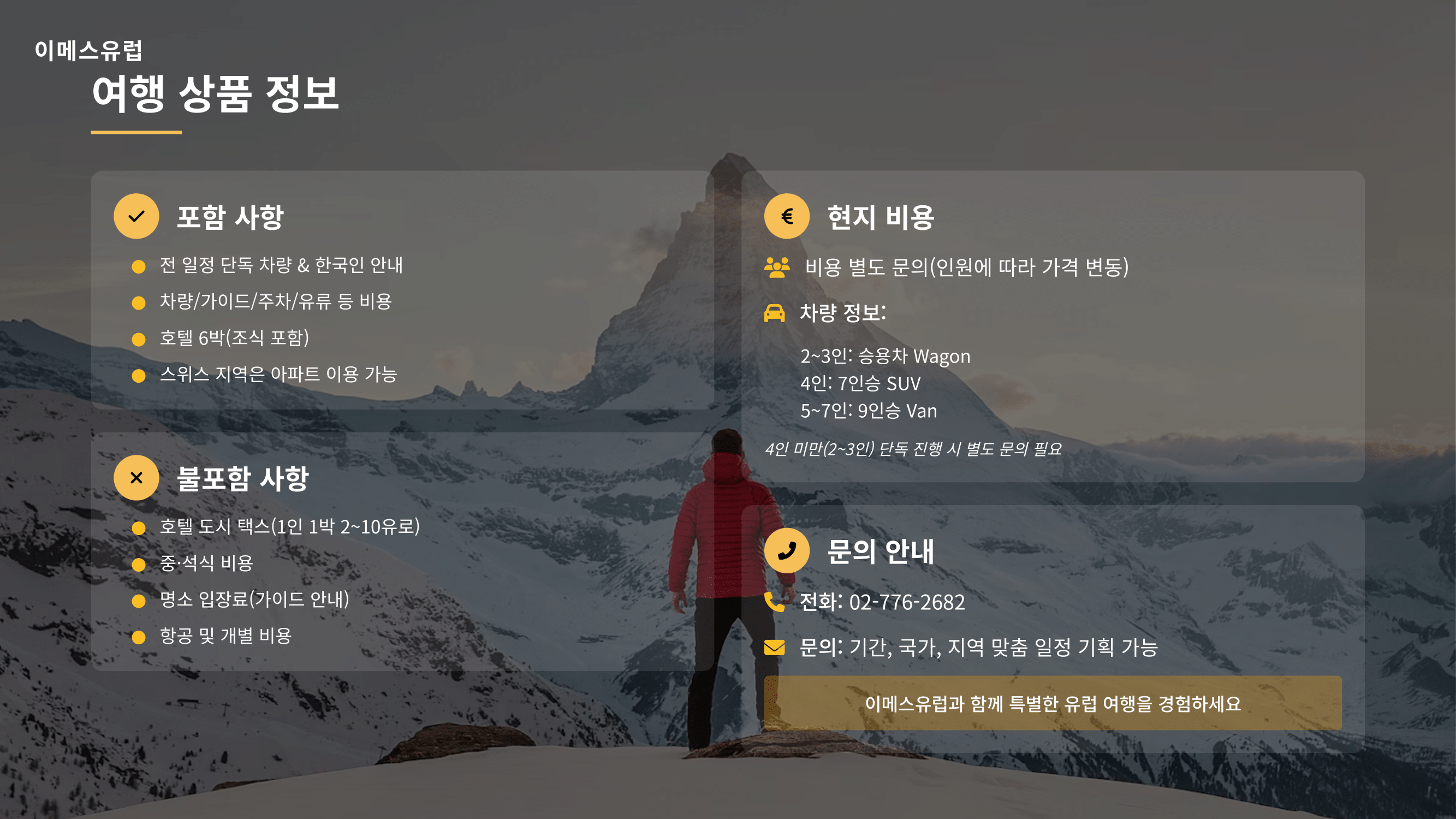 (주)이메스유럽 앤 투어팡신 ㅣ 대표 임응석 ㅣ 사업자등록번호 101-86-89132 ㅣ 관광사업등록번호 제 2014-000018호